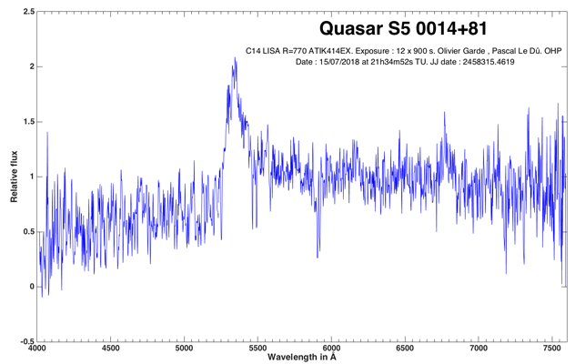 Raw spectrum of 900s of Quasar S5 014+83 (ATIK 460ex in bin 1×1)